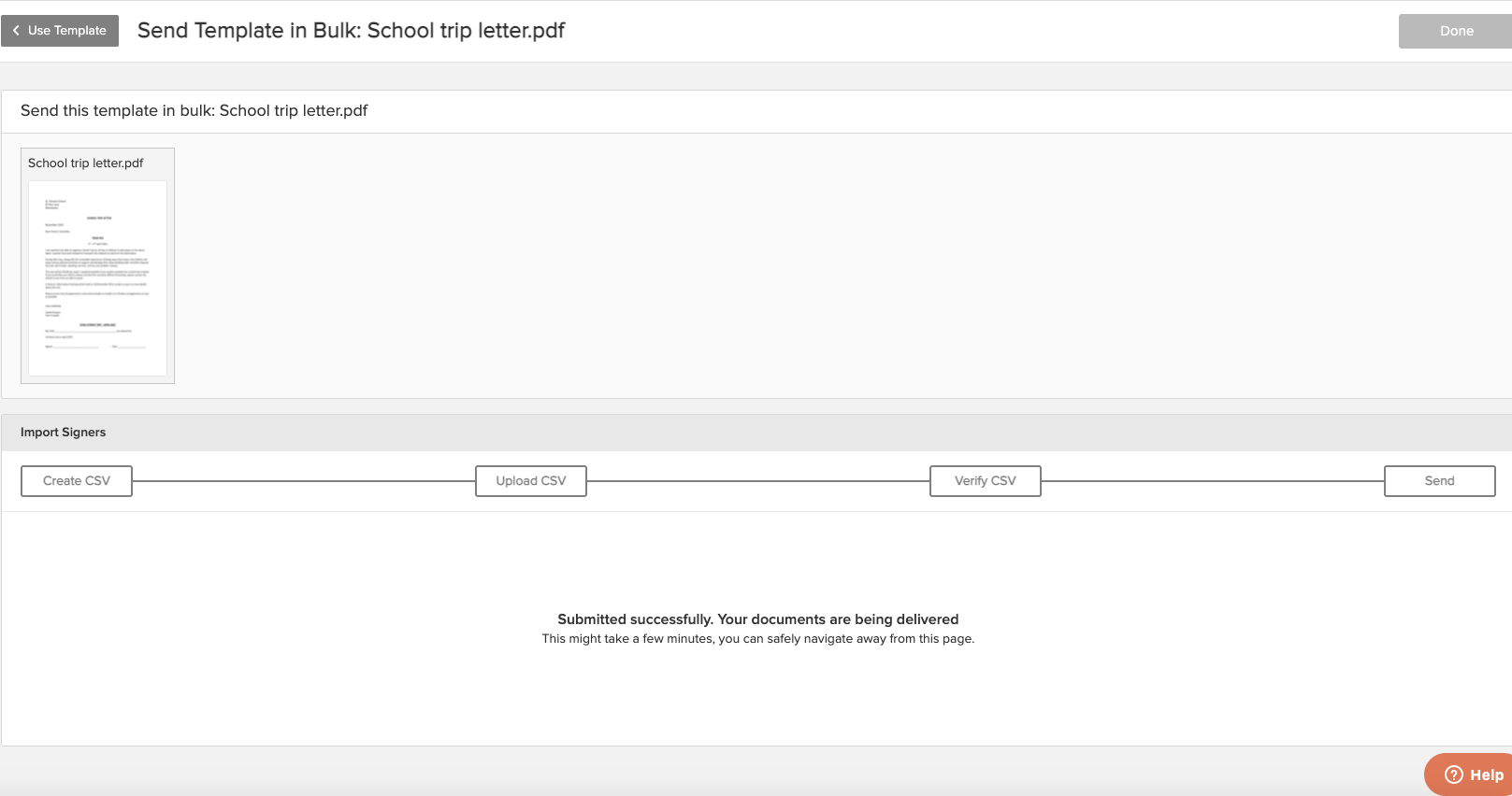 Our new feature, bulk sending, is very helpful in situations where you need to get signatures from a larger group of people. For example it could be used by an organizer of outdoor events that needs all participants to sign a liability waiver or a school that needs the parents' consent for a new measure.