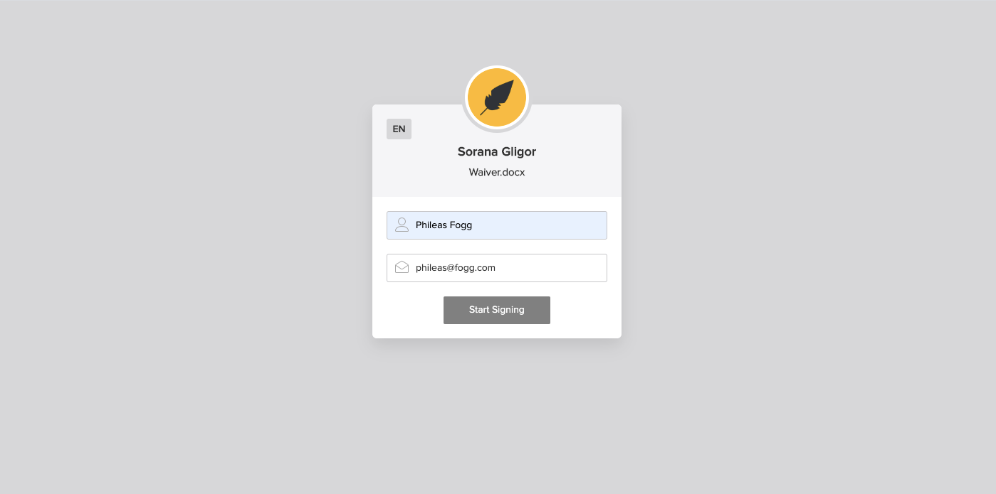 You will then be redirected to a page where your signer will be required to enter their name and email address.