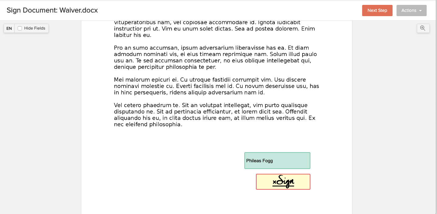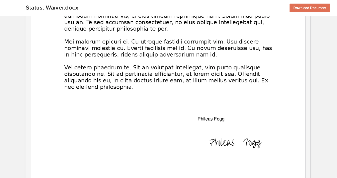 After signing, the client needs to click the "Sign" button, which brings them to the now signed document.