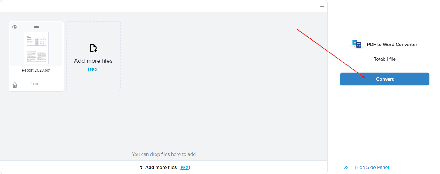 Next, you will see the document appear on the left side. Click the "Convert" button.