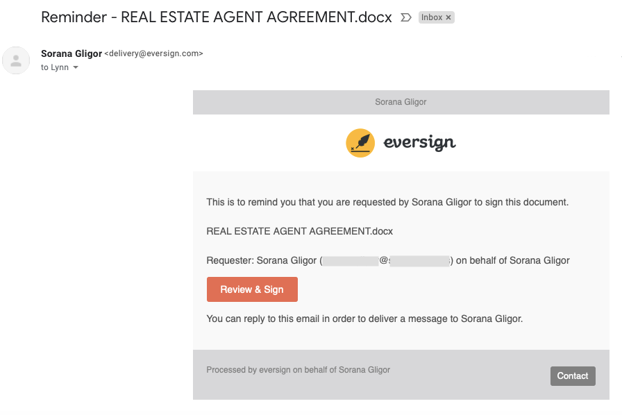 The recipient will receive the reminder via email from Xodo Sign with your name as the sender and the subject "Reminder - `name of document to be signed`". The email will look like in the screenshot below: