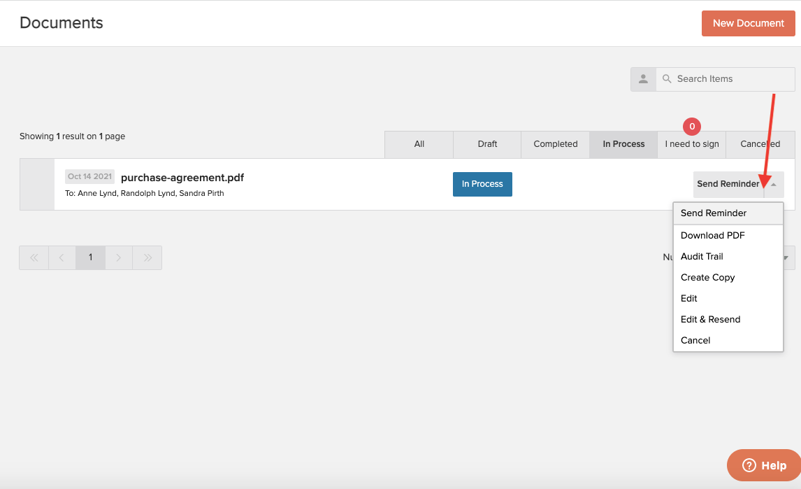 If you only want to send a reminder to one or more specific signers instead of all of them, first go to the list of documents In Process.