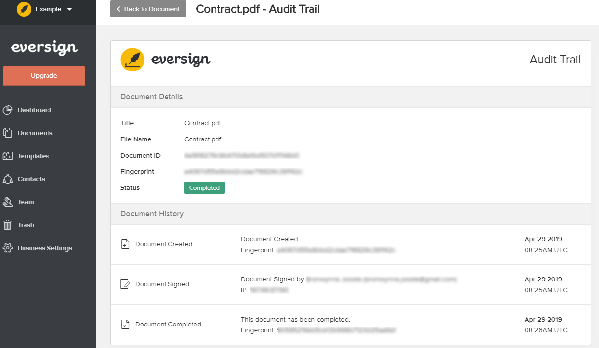 Each Xodo Sign document comes with a comprehensive audit trail.