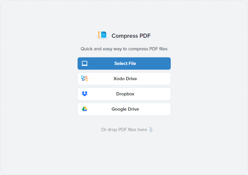 You can either drag and drop the PDF or click the button to search for it on your computer. There's also the option to grab documents from Xodo Drive, Google Drive and DropBox.