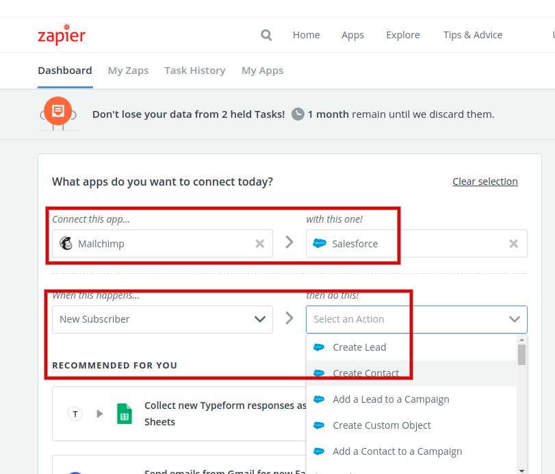Some CRMs will let you create these automatic actions easily. But, a third-party integration like Zapier can connect your CRM to pretty much any application, without requiring any code.