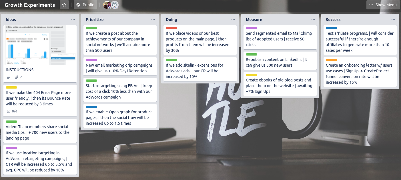 Each board has a list with a set of cards - these are your projects. Customize your board to suit your needs, by attaching to-do lists or checklists to cards. As you complete projects, drag them from one board to the next.